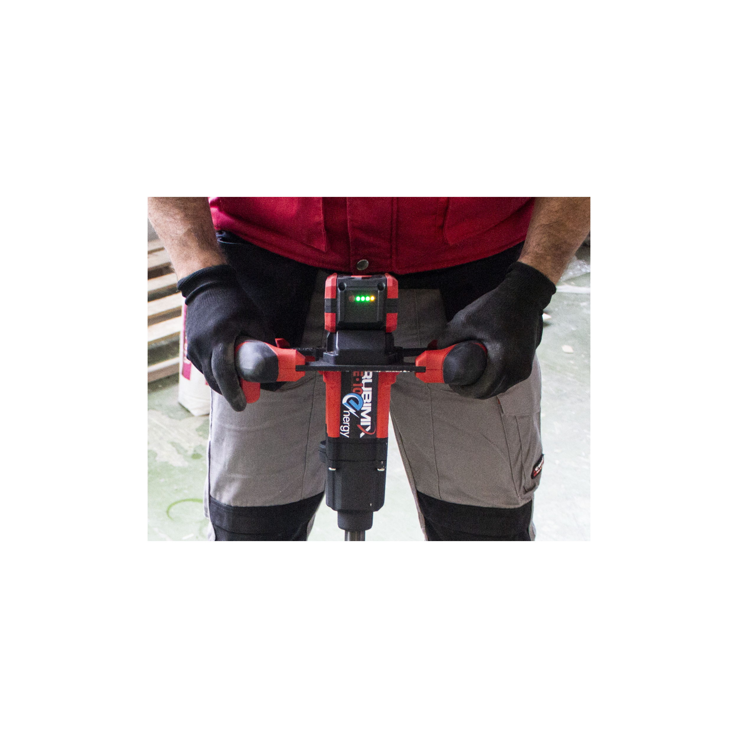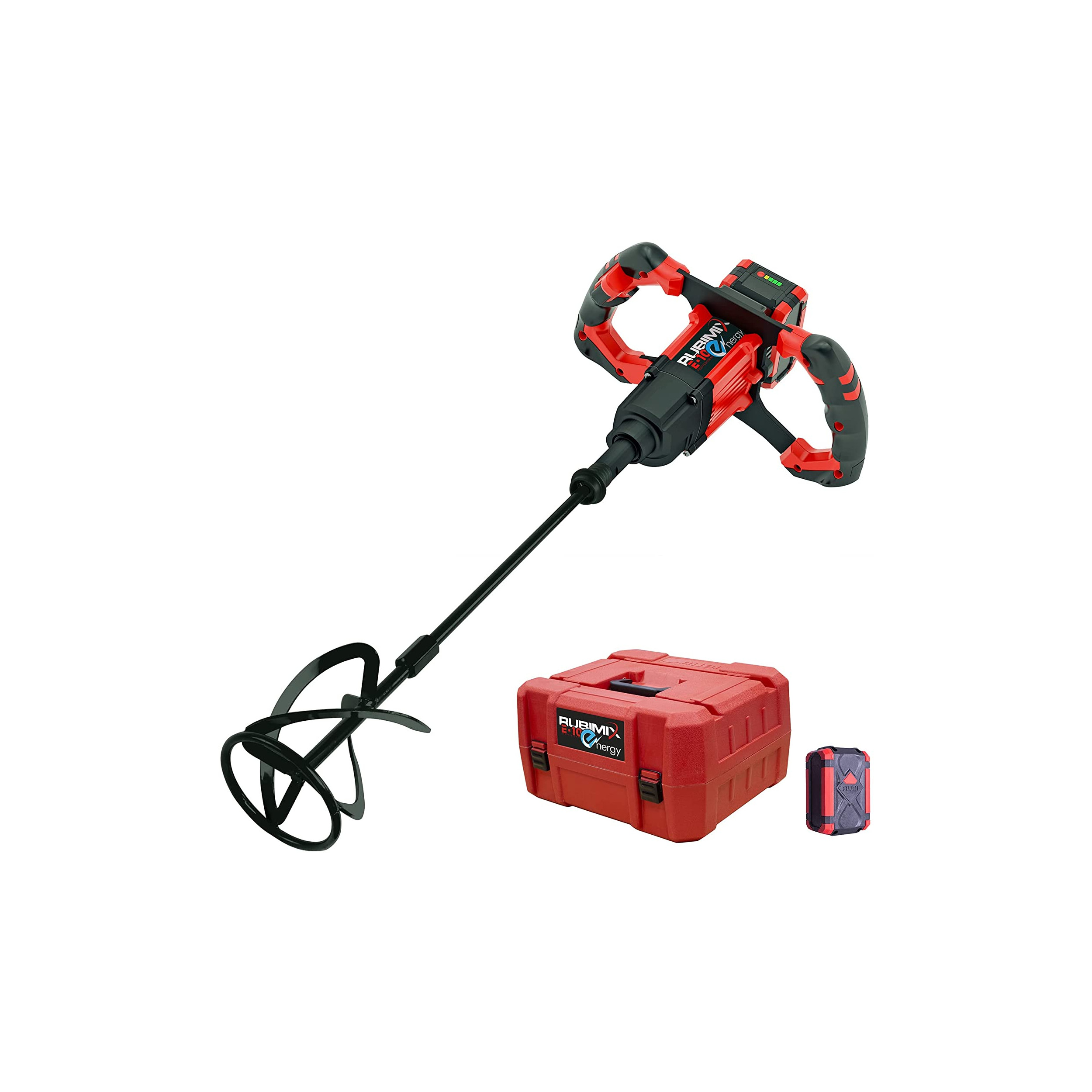 El mezclador eléctrico con batería RUBIMIX E-10 ENERGY es ideal para el mezclado de adhesivos cementosos, resinas, pinturas, y otros materiales. La transportabilidad, la manejabilidad y la comodidad de no depender de un punto de luz y la libertad y seguridad de trabajar sin cables, son los principales beneficios del mezclador RUBIMIX E-10 ENERGY. Equipado con un motor BRUSHLESS, el RUBIMIX E-10 ENERGY no necesita mantenimiento y se incrementa la vida del producto, de forma significativa.